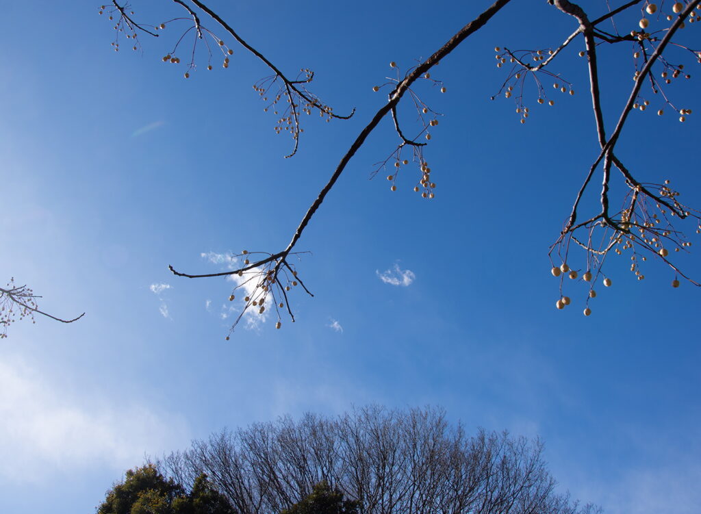 野菜と花の歳時記 せんだん(栴檀)の実 2026年1月24日 精兵衛 樹高30mになる落葉高木です。5月ごろに薄紫の花を咲かせ、初夏には実になるのですが、落葉した冬には完熟した実だけが残ります。花は古くから親しまれていて万葉集や枕草子にも登場します。樹皮、葉、果実ともに薬効があって生薬として重宝されていました。(埼玉県 精兵衛)