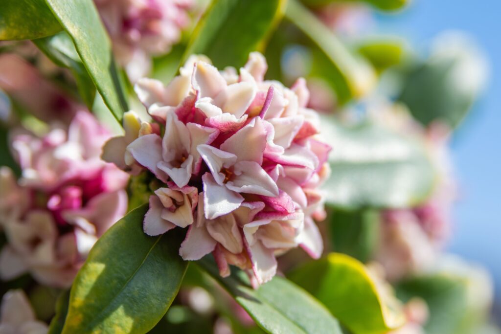 野菜と花の歳時記 ジンチョウゲ(沈丁花) 2026年3月7日 精兵衛 夏のクチナシ、秋の金木犀とともに「日本の三大香木」といわれる沈丁花です。春の訪れを告げる沈丁花の甘く濃厚な香りは格別です。名前の由来は「沈香」の香りと丁子」の花の形からと言われています。花の色や葉の形などが異なる様々な品種が存在します。(埼玉県 精兵衛)