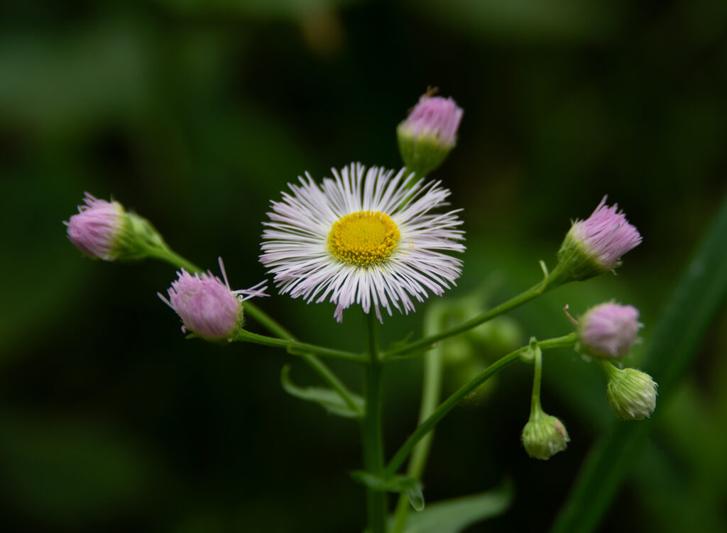 野菜と花の歳時記 ハルジオン(春紫菀) 2026年4月18日 精兵衛 北アメリカ原産の外来種で、大正時代に渡来帰化したといわれています。葉、茎、蕾など大半が食用可能です。やや灰汁があるので、茹でてから充分に水にさらして使います。花の形がそっくりなヒメジョオンとよく混同されますが、ハルジオンの花期は4~6月に対してヒメジョオンは6~10月など、似て非なるところが沢山あります。(埼玉県 精兵衛)