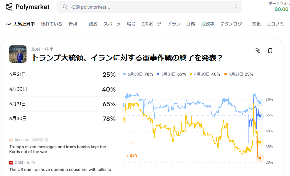 ポリマーケットには管理者がおらず、参加者が賭けのテーマとオッズを決め、結果を当てた人たちに暗号通貨を払う仕組みです。「何でも賭けの対象にする」は、ますます勢いを増し、イラン戦争では、240ものテーマが設定され、人びとが群がっています。